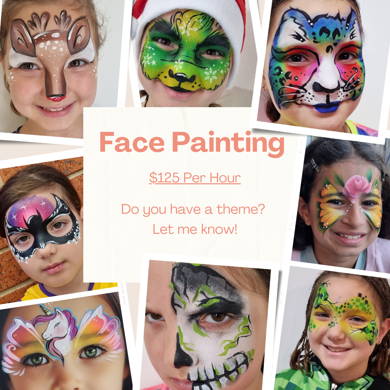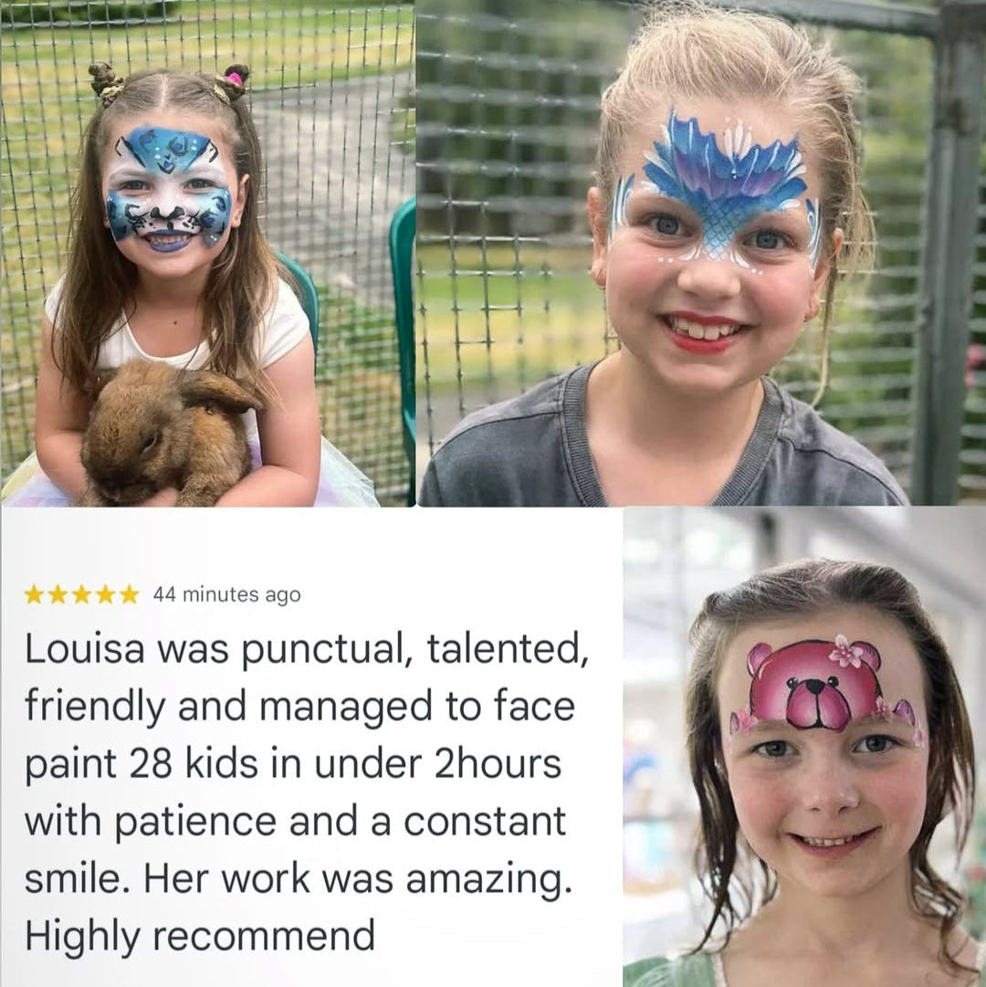 • 7–10 children per hour for detailed half or full-face designs